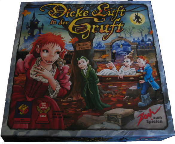Es herrscht Dicke Luft in der Gruft, wenn 3–6 Vampirfürsten versuchen, noch vor dem Morgengrauen gemütliche schattige Gräber für ihre Vampire zu finden. Das ist gar nicht so einfach, denn die Grabdeckel sehen alle gleich aus und man muss sich schon merken, unter welchem schon ein anderer Vampir liegt oder wo nicht gar der Gegner übelriechenden Knoblauch versteckt hat. Es dauert rund 1 Stunde, bis der erste Spieler fertig ist. (Verena)