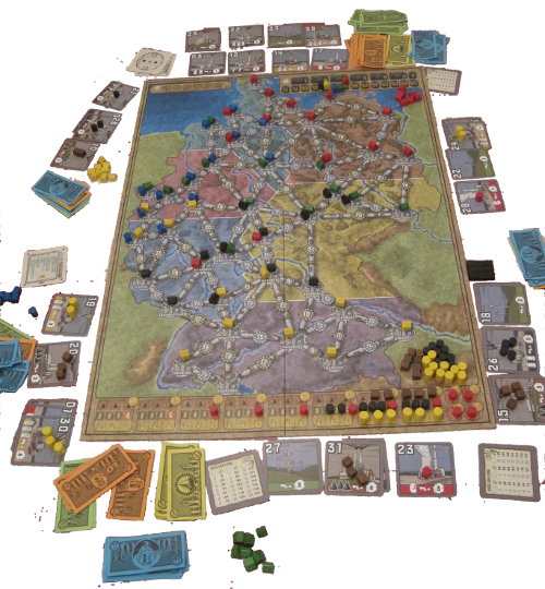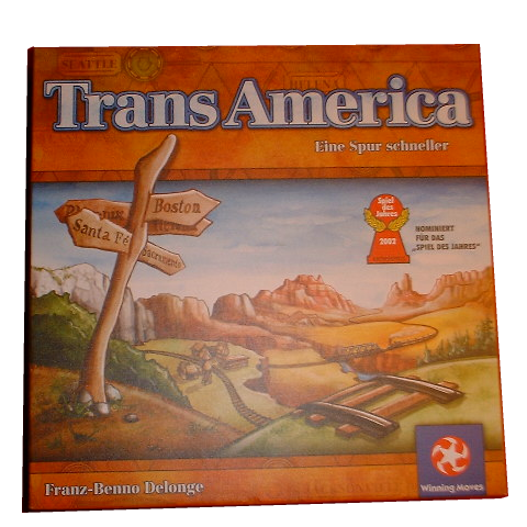 Trans America zeichnet sich durch einfache Regeln und ein angenehmen Spieltempo aus. 3–5 Eisenbahner übernehmen jeweils die Rolle einer Eisenbahngesellschaft, die ein Schienennetz zwischen Ost- und Westküste erbauen und diverse Großstädte mit einschliessen müssen. Nach einer halben Stunde steht der Gewinner oft schon fest. (Verena)