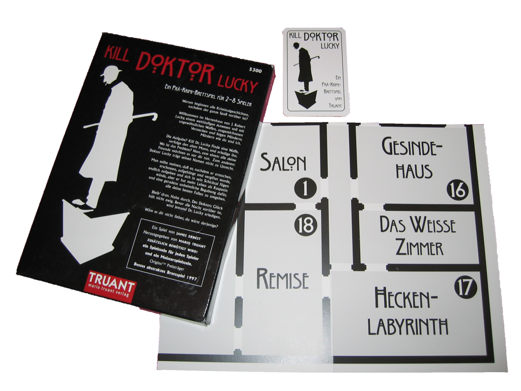 Kill Doktor Lucky lautet das Motto dieses Prä-Krimis. 2–6 rachsüchtige Mörder verfolgen Dr. Lucky rund 1 Stunde lang kreuz und quer durch seine verzweigte Villa und versuchen, ihn mit Billiardqueue, Küchenmesser oder verdorbener Sahne aus dem Weg zu räumen, natürlich nur, wenn kein anderer Spieler sich in Sichtweite befindet. (Nadine)