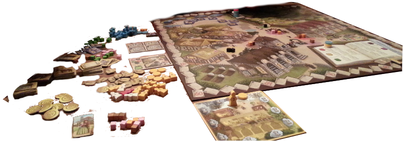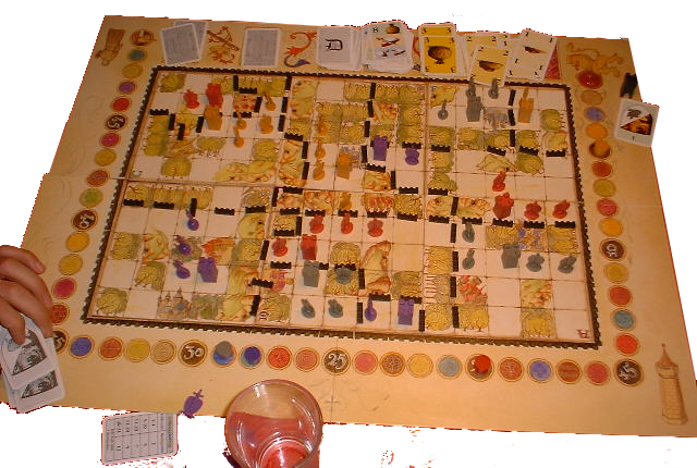 Die mittelalterliche Stadt Carcassonne dient als Schauplatz für dieses prima von 2–6 Spielern skalierbare Spiel. Jeder versucht, seine Gefolgsleute möglichst effektiv einzusetzen, um möglichst große Städte zu ummauern, lange Straßen zu bauen, Klöster fertigzustellen und seinen Gegenspielern abspänstig zu machen. Weitere Abwechslung kommt durch Die Erweiterung, Händler und Baumeister, Burgfräulein und Drache und den seltenen Fluss ins Spiel. Je nach Anzahl der Erweiterungen und Denkgeschwindigkeit der Spieler dauert eine Runde 30 Minuten bis 1 Stunde. (Saskia, Johanna, Verena, Klaus, Phrank)
