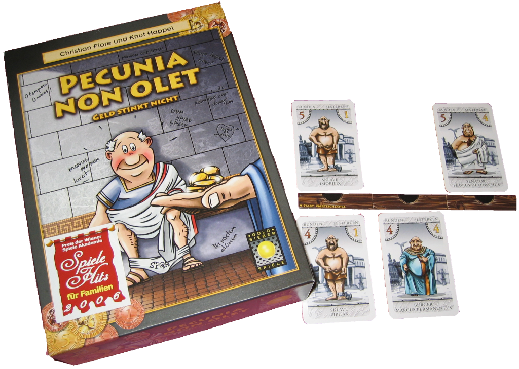 Der Leitspruch Pecunia non olet motiviert 2–6 Latrinenbetreiber, auf dem Forum Romanum um zahlungskräftige Kundschaft wettzueifern. Knickrige und fettleibige Senatoren, die partout nicht neben Sklaven sitzen wollen, schiebt man gerne in die Warteschlange des Gegners, während schnatternde Römerinnen gerne auch zu zweit die Villa Dixius für ein Pläuschchen nutzen. Nach rund 1 Stunde sind genug Sesterzen verdient, um sich zur Ruhe zu setzen. (Verena)